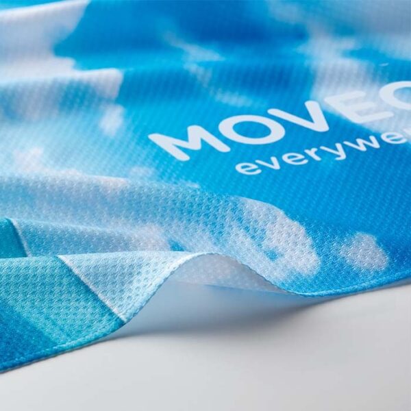 Διαφημιστική Πετσέτα Ψύξης από 100% πολυεστέρα PRET 140gsm με εκτύπωση του σχεδίου και των στοιχείων της επιχείρησής σας. Απλά βρέξτε την πετσέτα και ανεμίστε την πριν την τοποθετήσετε πάνω σας.