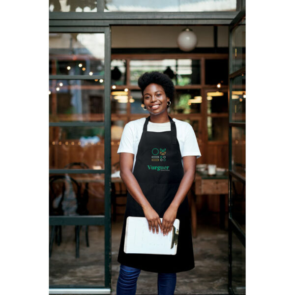 Διαφημιστική Ποδιά από 35% βαμβάκι 240 gr/m² και 65% πολυεστέρα με μεταξοτυπία ή κέντημα ή θερμομεταφορά ή και ψηφιακή θερμομεταφορά των στοιχείων της επιχείρησής σας. Διαθέτει 2 μπροστινές τσέπες και ρυθμιζόμενο ιμάντα λαιμού με μεταλλική πόρπη.
