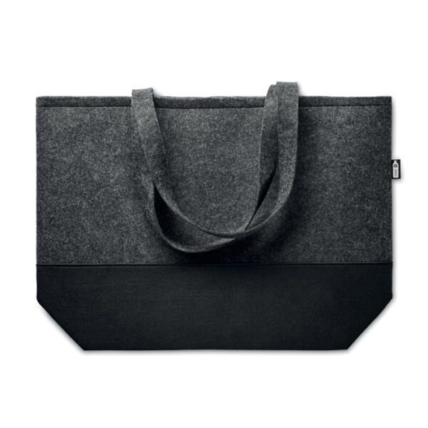 Διαφημιστική Τσάντα από ανακυκλωμένη τσόχα ΡRET με μακριές χειρολαβές και χρωματιστή βάση με εκτύπωση ή θερμομεταφορά ή και ψηφιακή θερμομεταφορά των στοιχείων της επιχείρησής σας. Ιδανική για καθημερινή χρήση ή τα ψώνια.