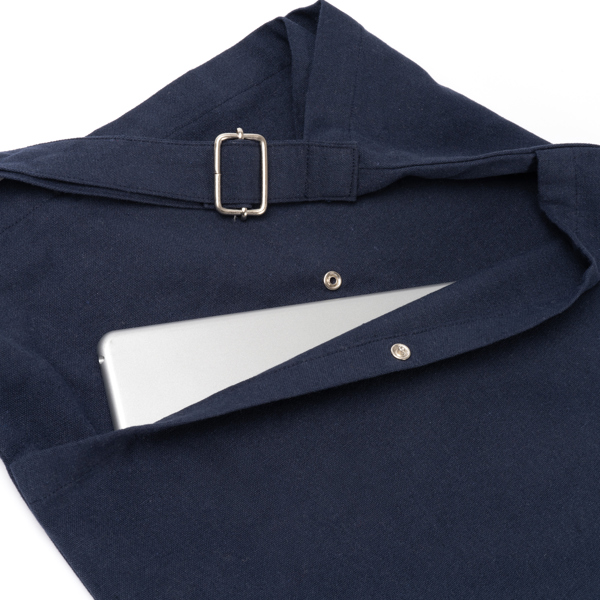 Διαφημιστική Τσάντα από ανακυκλωμένο βαμβάκι 240 g/m² με μεταξοτυπία ή θερμομεταφορά ή και κέντημα των στοιχείων της επιχείρησής σας. Διαθέτει μπροστινή τσέπη, κλείσιμο με κουμπί και εσωτερική τσέπη. Ρυθμιζόμενος ιμάντας μεταφοράς.