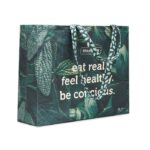 Διαφημιστική Τσάντα επαναχρησιμοποιούμενη από 100% ανακυκλωμένο βαμβάκι με μακριές λαβές και εκτύπωση του σχεδίου και των στοιχείων της επιχείρησής σας.