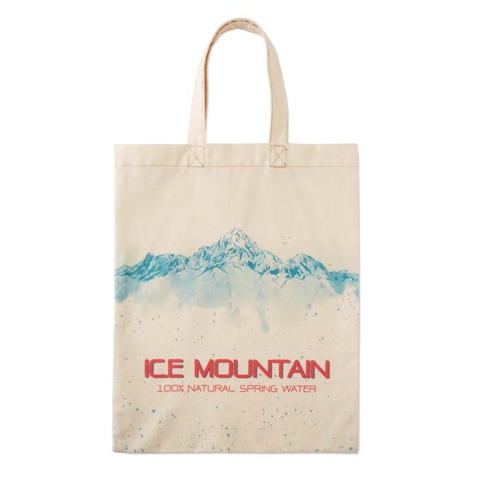 Διαφημιστική Τσάντα επαναχρησιμοποιούμενη από βαμβάκι με κοντές λαβές και εκτύπωση του σχεδίου και των στοιχείων της επιχείρησής σας. Δυνατότητα κατασκευής και με οργανικό βαμβάκι.