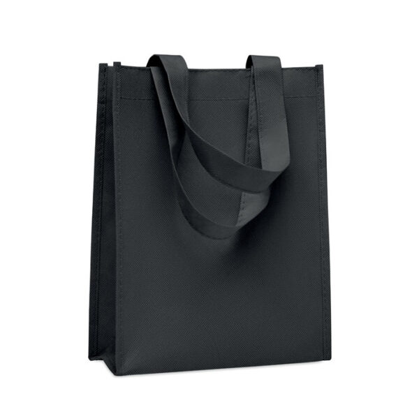 Διαφημιστική Τσάντα με κοντά χερούλια και ενίσχυση κατασκευασμένη από μη υφαντό ύφασμα πολυεστέρα RPET 80 gr/m² με μεταξοτυπία ή θερμομεταφορά ή και ψηφιακή θερμομεταφορά των στοιχείων της επιχείρησής σας.
