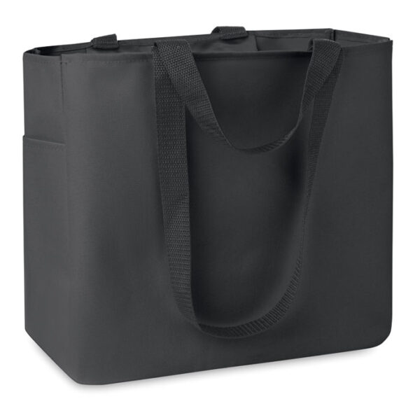 Διαφημιστική Τσάντα από πολυεστέρα 600D με εκτύπωση ή θερμομεταφορά ή και ψηφιακή θερμομεταφορά των στοιχείων της επιχείρησής σας. Διαθέτει εσωτερική τσέπη με κλείσιμο φερμουάρ, εξωτερική πλαϊνή τσέπη και μακριές χειρολαβές. Ιδανική για τα ψώνια.