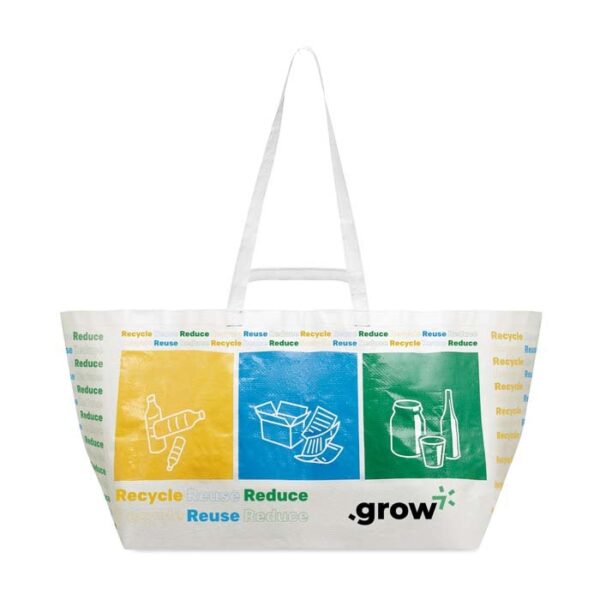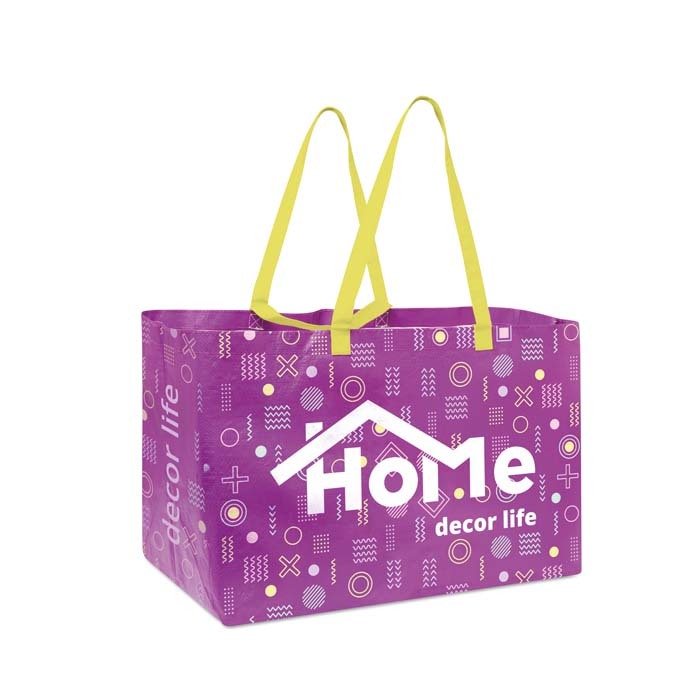 Διαφημιστική Τσάντα XXL επαναχρησιμοποιούμενη με μακριές λαβές κατασκευασμένη από μη υφαντό ύφασμα ΡΡ 140gsm με εκτύπωση του σχεδίου και των στοιχείων της επιχείρησής σας. Ιδανική για τα ψώνια.
