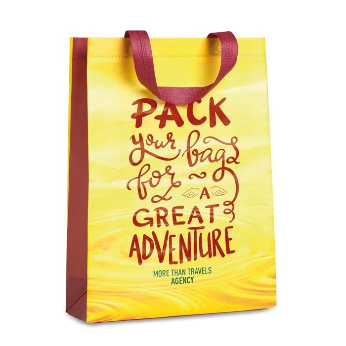 Διαφημιστική Τσάντα επαναχρησιμοποιούμενη κατασκευασμένη από μη υφαντό ύφασμα με κοντές λαβές και εκτύπωση του σχεδίου και των στοιχείων της επιχείρησής σας.