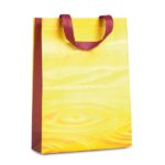 Διαφημιστική Τσάντα επαναχρησιμοποιούμενη με μακριές λαβές κατασκευασμένη από γυαλιστερό μη υφαντό ύφασμα 120gsm και εκτύπωση του σχεδίου και των στοιχείων της επιχείρησής σας. Αναδιπλώνεται σε τσαντάκι για εύκολη μεταφορά όταν δεν χρησιμοποιείται. Ιδανική για τα ψώνια.