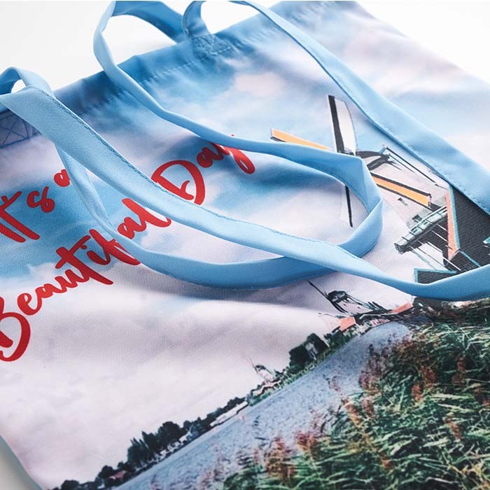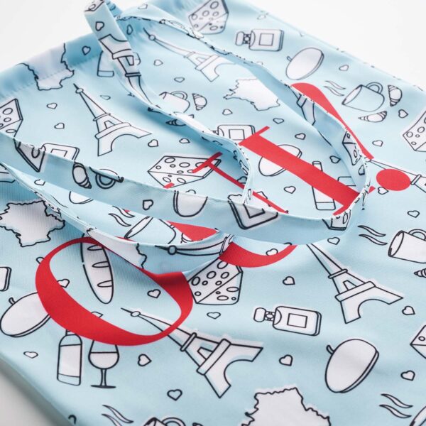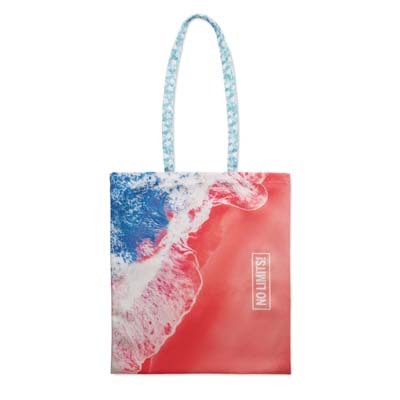 Διαφημιστική Τσάντα επαναχρησιμοποιούμενη με μακριές λαβές κατασκευασμένη από πολυεστέρα tote PRET 220gsm και εκτύπωση του σχεδίου και των στοιχείων της επιχείρησής σας.