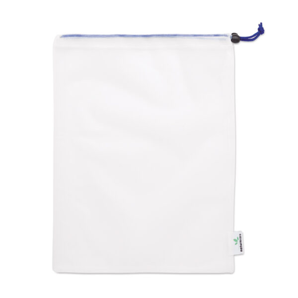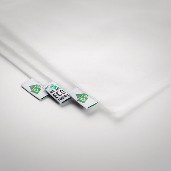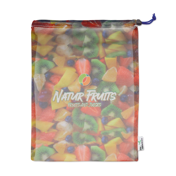 Διαφημιστική Τσάντα Φαγητού επαναχρησιμοποιούμενη, κατασκευασμένη από ανακυκλωμένο πολυεστέρα PET με χρωματιστό κλείσιμο από πλαστικό ABS και εκτύπωση του σχεδίου και των στοιχείων της επιχείρησής σας. Διαθέτει πιστοποιητικό FCA. Ιδανική για φρέσκα λαχανικά και φρούτα.