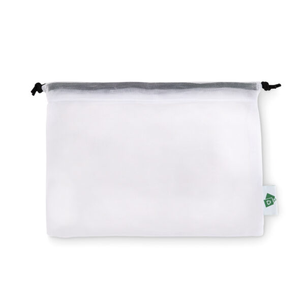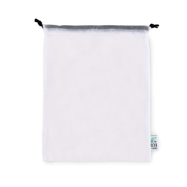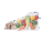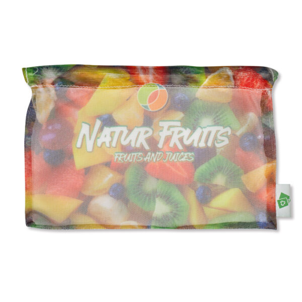 Διαφημιστική Τσάντα Φαγητού επαναχρησιμοποιούμενη, κατασκευασμένη από ανακυκλωμένο πολυεστέρα PET με διπλό κορδόνι περίσφιξης και εκτύπωση του σχεδίου και των στοιχείων της επιχείρησής σας. Διαθέτει πιστοποιητικό FCA. Πλένεται στο χέρι. Ιδανική για φρέσκα λαχανικά και φρούτα.