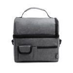 Διαφημιστική Τσάντα-Ψυγείο XL από ανακυκλωμένο πολυεστέρα RPET με σχέδιο heather και εκτύπωση ή θερμομεταφορά των στοιχείων της επιχείρησής σας. Δύο διαμερίσματα και μπροστινή τσέπη. Ισοθερμική επένδυση αλουμινίου. Ρυθμιζόμενος ιμάντας μεταφοράς.