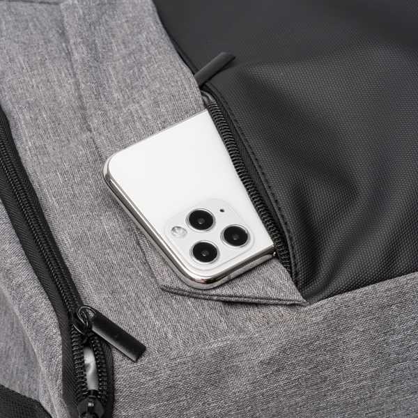 Διαφημιστική Τσάντα-Ψυγείο από δερματίνη PU και ανακυκλωμένο πολυεστέρα 300D RPET με θερμομεταφορά ή και μεταξοτυπία των στοιχείων της επιχείρησής σας. Περιλαμβάνει κύρια θήκη με ισοθερμικό εσωτερικό, εξωτερική τσέπη με φερμουάρ και ρυθμιζόμενο ιμάντα μεταφοράς με ενίσχυση.
