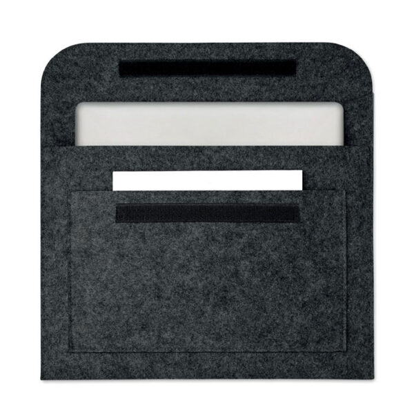Διαφημιστική Τσάντα Laptop από τσόχα ανακυκλωμένου πλαστικού πάχους 2mm με εκτύπωση ή ψηφιακή εκτύπωση ή και θερμομεταφορά των στοιχείων της επιχείρησής σας. Ενδείκνυται για φορητούς υπολογιστές (laptop) 15 ιντσών. Μπορεί εναλλακτικά να λειτουργήσει και ως φάκελος μεταφοράς εγγράφων. Διαθέτει πρόσθετη μπροστινή τσέπη για τοποθέτηση μικροαντικειμένων. Κλείσιμο Velchro.