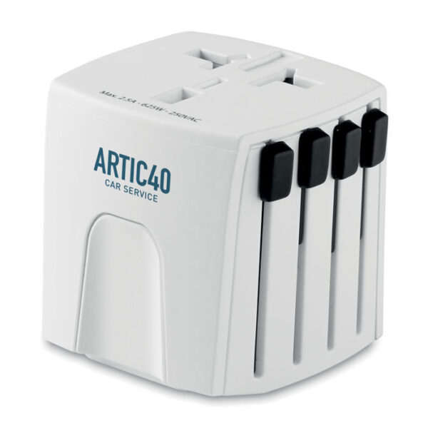 Διαφημιστικός προσαρμογέας φόρτισης (adapter) ταξιδιού γενικής χρήσης MUV USB A/C με εκτύπωση ή ψηφιακή εκτύπωση των στοιχείων της επιχείρησής σας. Διαθέτει αναδυόμενους πόλους φόρτισης, καθιστώντας την συσκευή ιδανική για χρήση σε χώρες της Ευρώπης, των ΗΠΑ, την Ιαπωνία, την Αυστραλία και την Κίνα.